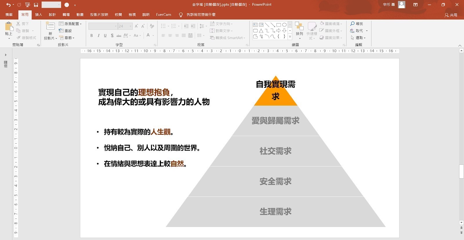 例如心理學中,廣為人知的馬斯洛需求層次理論,分為生理、安全、社交、尊重和自我實現的需求,人們需要先滿足下方需求後,才能向上一個需求邁進。這樣呈現資訊關係的格式,就稱作階層,通常會搭配製成金字塔的樣貌,藉此表現內容層層遞進的概念!